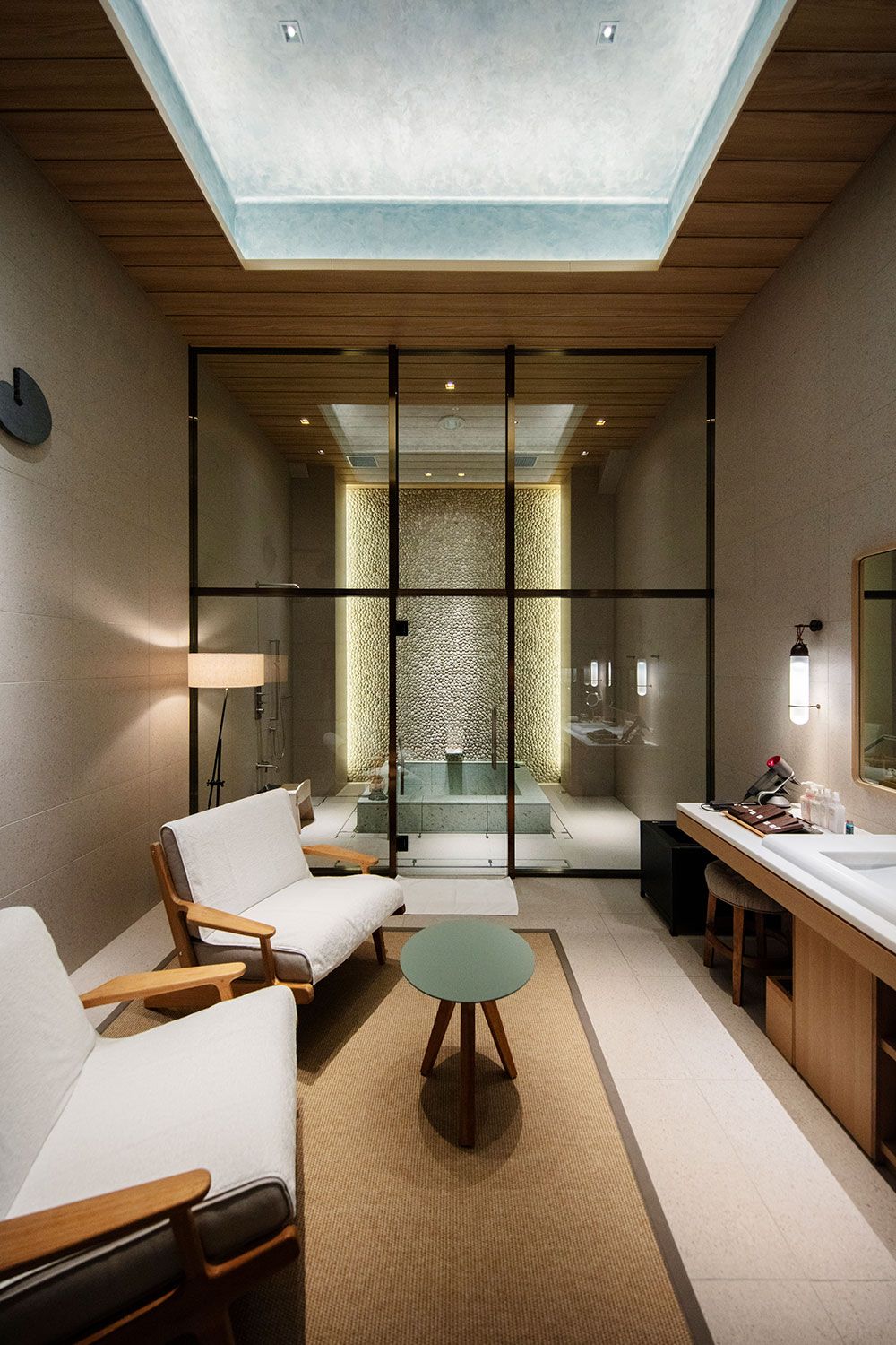 講堂の一角を改装したプライベートバス。天井が高く、気持ちがいい