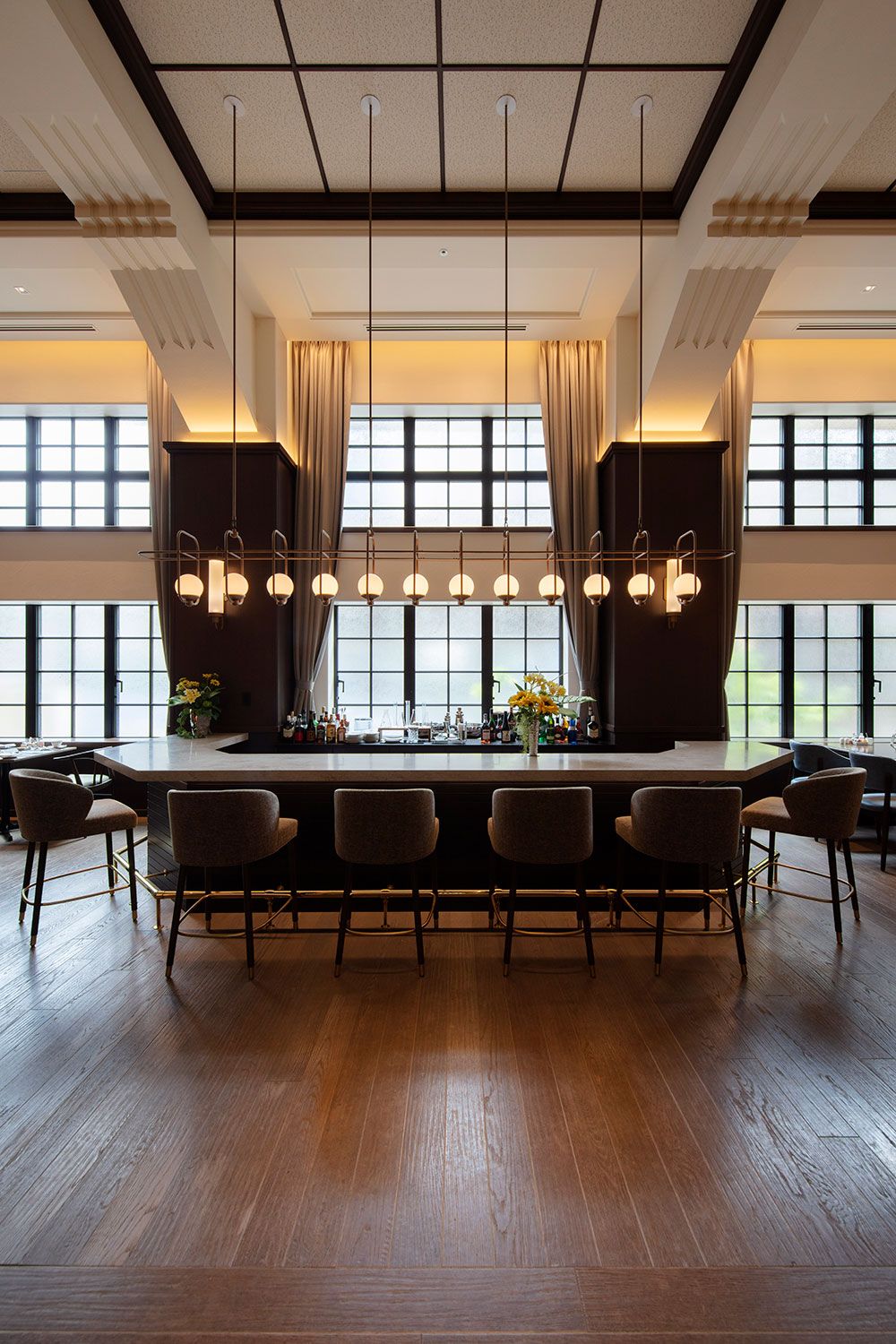 講堂を改装したレストラン。天井は当時のままで使用