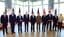 G7および欧州連合(EU)の首脳と写真撮影するゼレンスキー・ウクライナ大統領。(時事通信=写真)