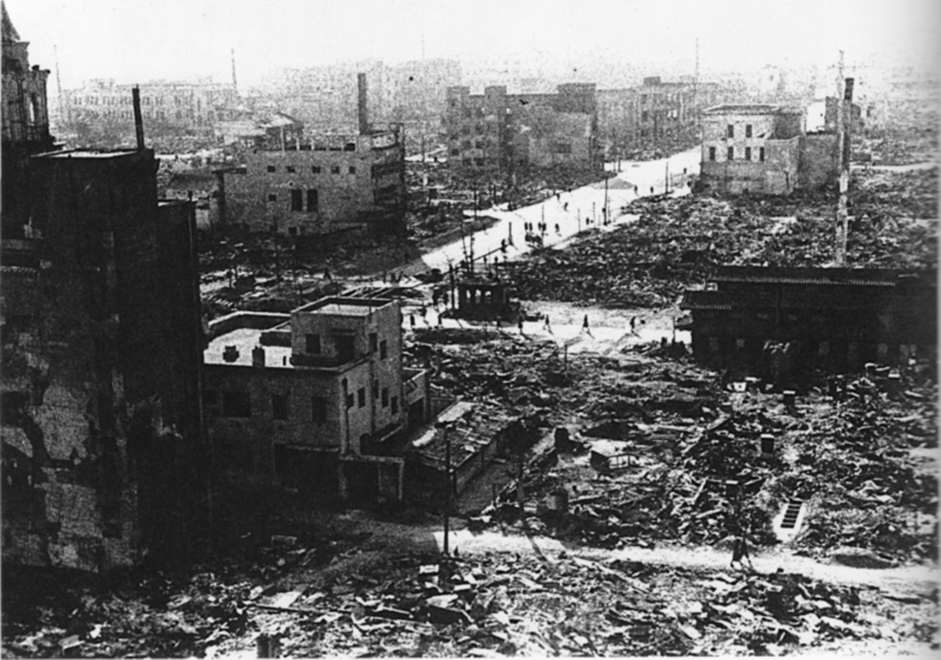 浅草松屋屋上から見た地下鉄ビル、雷門跡、仲見世などの焼跡。(写真=日本写真公社・深尾晃三/PD-Japan-oldphoto/