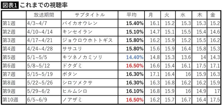 出典=ビデオリサーチ調べ、関東地区、世帯視聴率