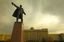 2022年6月30日、ロシア対外情報庁の記念碑の前であいさつするロシアのプーチン大統領(写真=kremlin.ru/CC-BY-4.0/