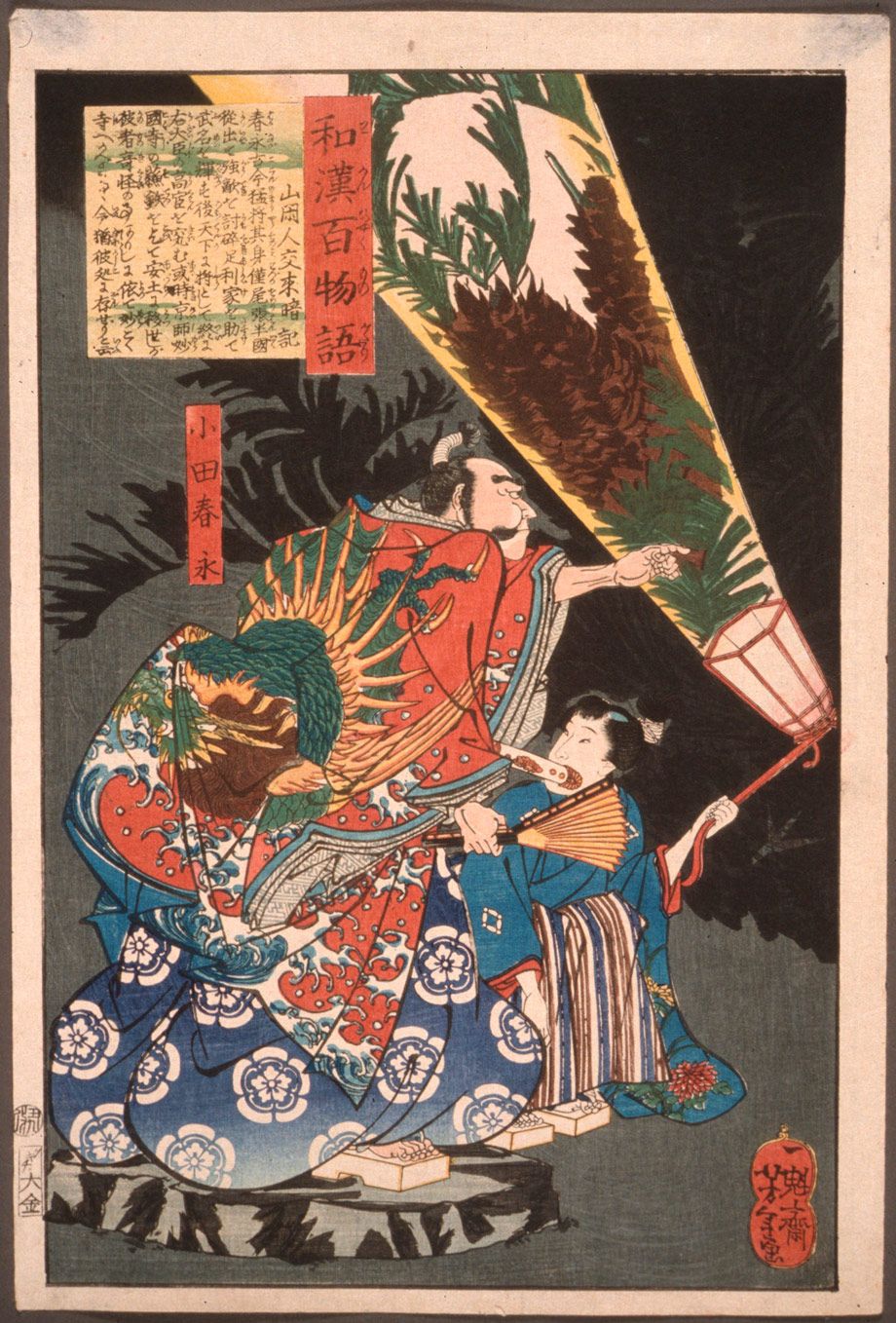 月岡芳年『和漢百物語』の「小田春永」(信長)と小姓(画像=ロサンゼルス郡美術館所蔵/PD-LACMA/