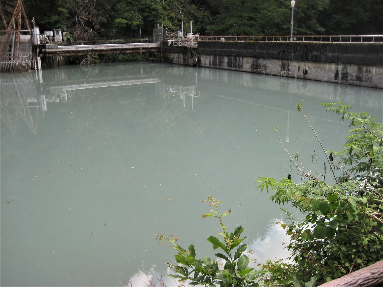 山梨県へ大量の湧水が流出する田代ダム(=静岡市)