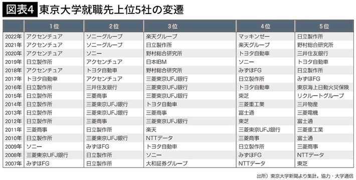 かつて1位だった三菱商事は10位以下に…東大生がこの20年で「商社よりもコンサル」を選ぶようになったワケ
