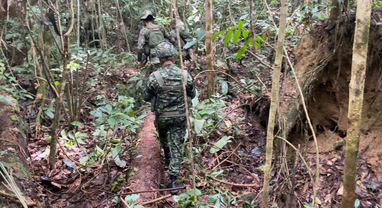 ジャングルの中を進むコロンビア軍。子供たちの残した足跡、はさみ、ミルクのボトルなどを手掛かりに捜索を続けた。