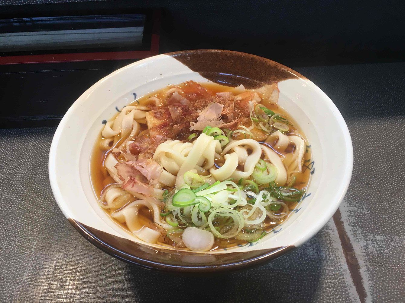 JR名古屋駅ホームにある店の「きしめん」。しょうゆ味が定番だ