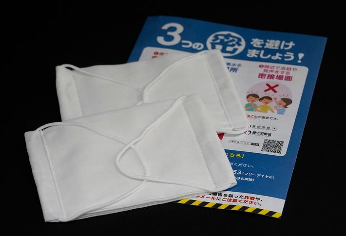 新型コロナウイルスの感染拡大防止に向け、政府が全世帯へ配布した布マスク。総額466億円に上る税金が投入される=2020年4月24日