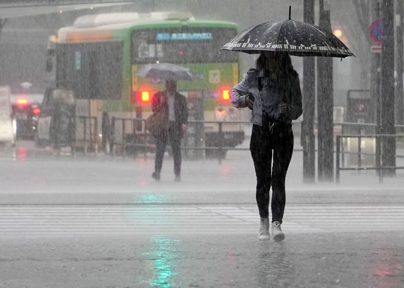 2023年6月2日、大雨の東京を歩く女性