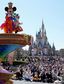 東京ディズニーランドで行われたプレスプレビューで、新パレード「ハーモニー・イン・カラー」に見入る来場者たち=2023年4月10日