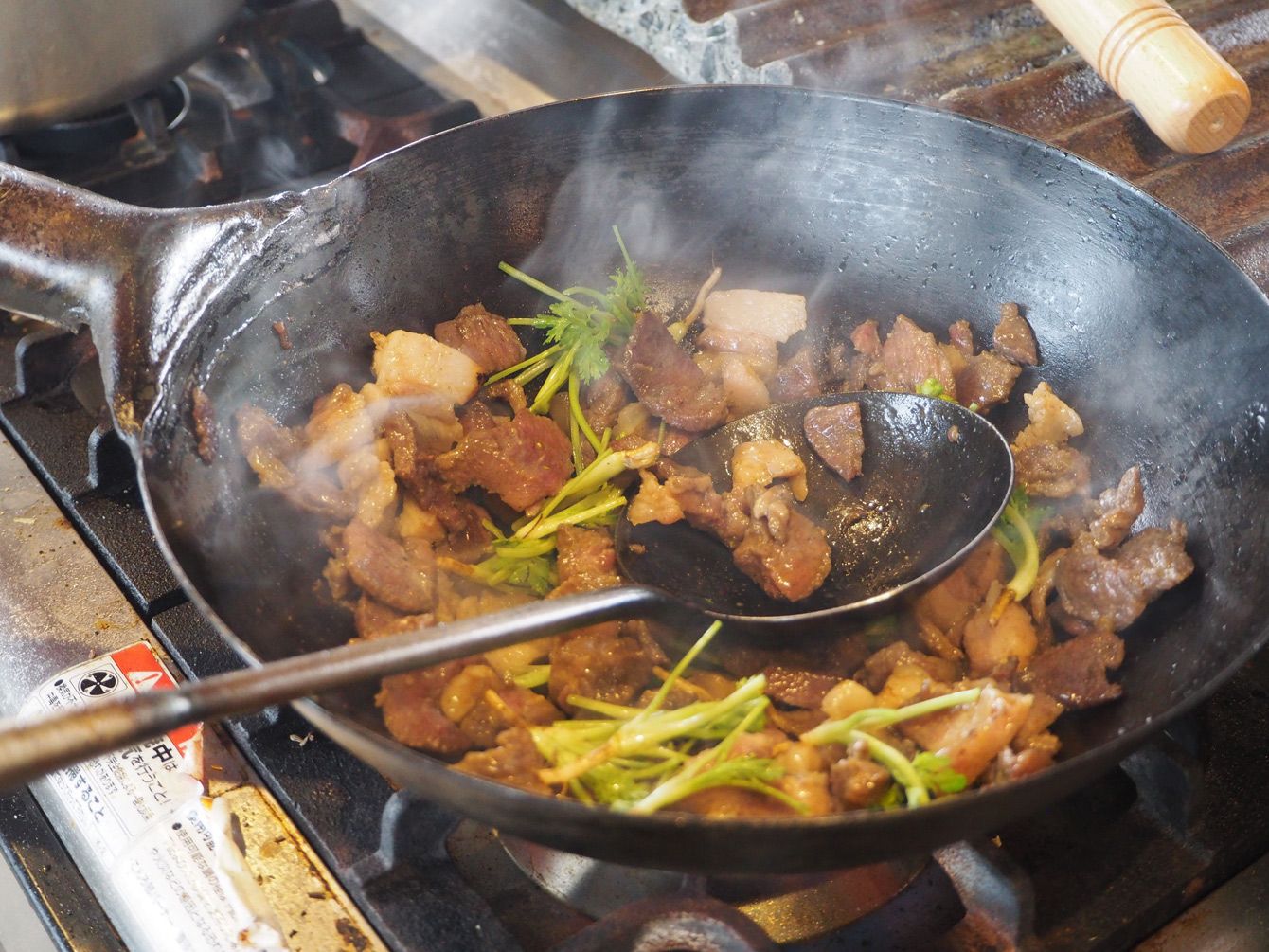 慣れた様子で鍋を振るう。