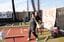 根鈴氏が実演する「縦のスイング」。インパクト時のバットが縦になることで、ボールとバットが当たる面積が大きくなる。