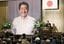 故安倍晋三元首相の追悼集会であいさつする岸田文雄首相。2023年7月8日午後、東京都港区の明治記念館で
