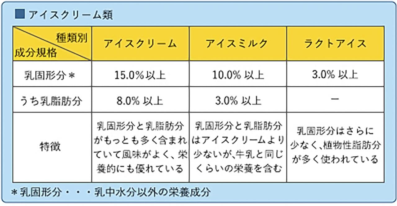 ※アイスクリーム類の種別(成分規格)。