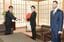 アラブ首長国連邦(UAE)親善大使に任命され、河野太郎外相(左)から委嘱状を受け取る滝沢秀明さん(中)。右はUAEのアルアメリ駐日大使=2017年8月31日、東京・霞が関の外務省