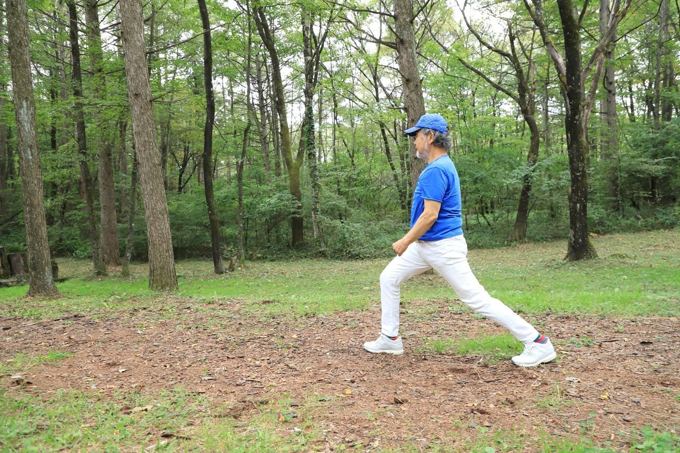 認知症予防に効果的といわれる「幅広歩行」をする鎌田實さん