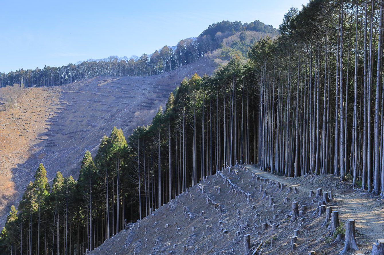 東京都西多摩郡檜原村と奥多摩町の境に位置する惣岳山の伐採地