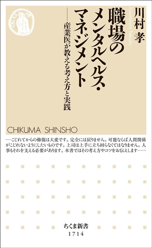 川村 孝『職場のメンタルヘルス・マネジメント 産業医が教える考え方と実践』(ちくま新書)