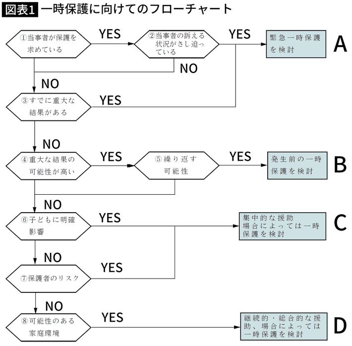 出典=厚生労働省の「子ども虐待対応の手引き」にある「一時保護に向けてのフローチャート」より