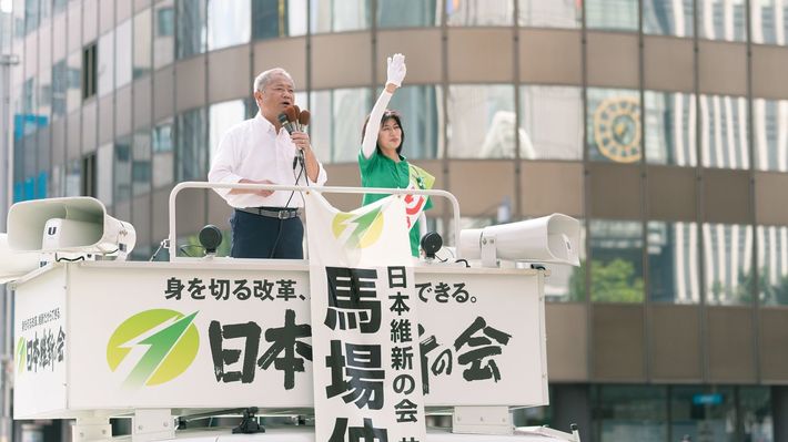 博多駅前広場における日本維新の会の街頭演説(写真=赤羽霧/CC-BY-SA-4.0/