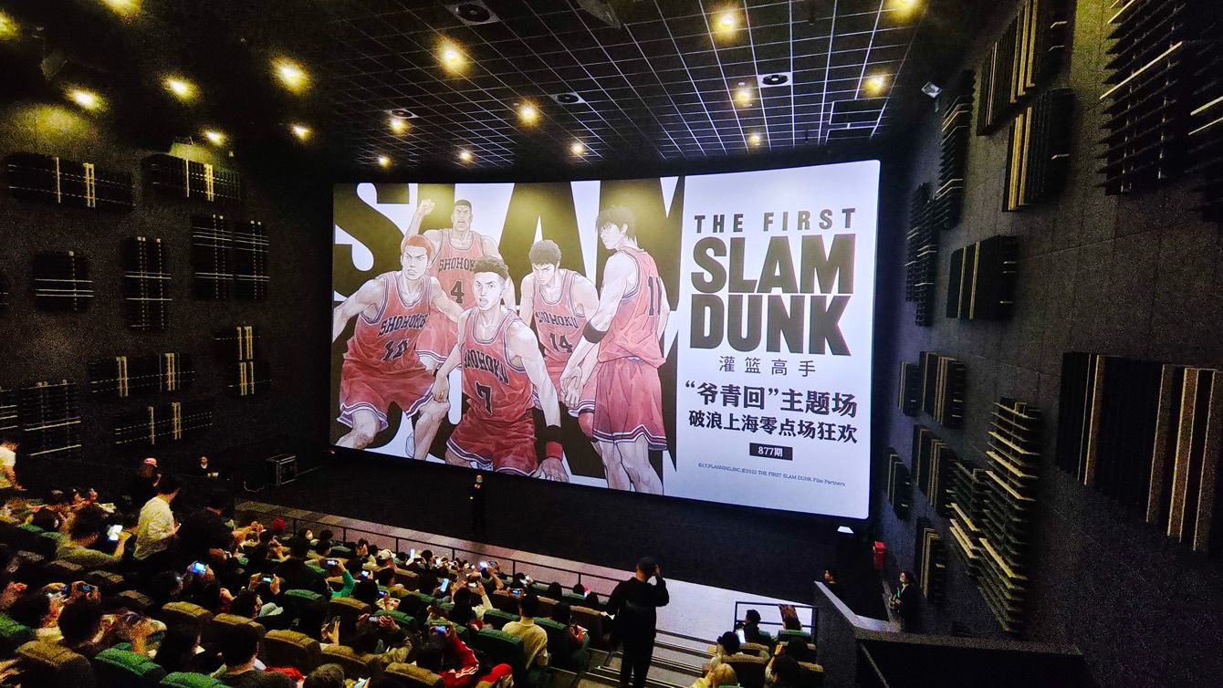 2023年4月20日、中国・上海の映画館で、日本の人気バスケットボール漫画のリメイクであるアニメ映画『THE FIRST SLAM DUNK』を鑑賞するファンたち