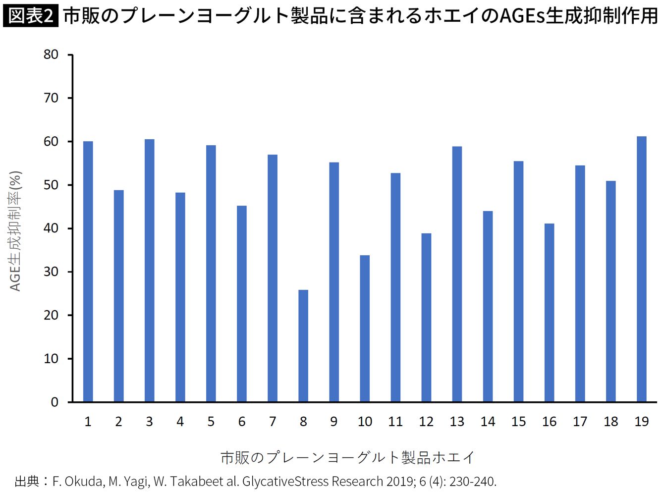 図B:市販のプレーンヨーグルト製品に含まれるホエイのAGEs生成抑制作用