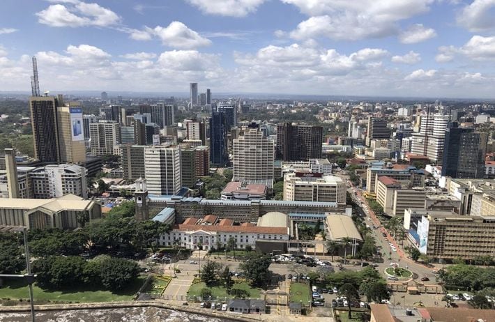 ナイロビ市内に走る一般的なバイクタクシーの様子。後部座席に座っているのは著者