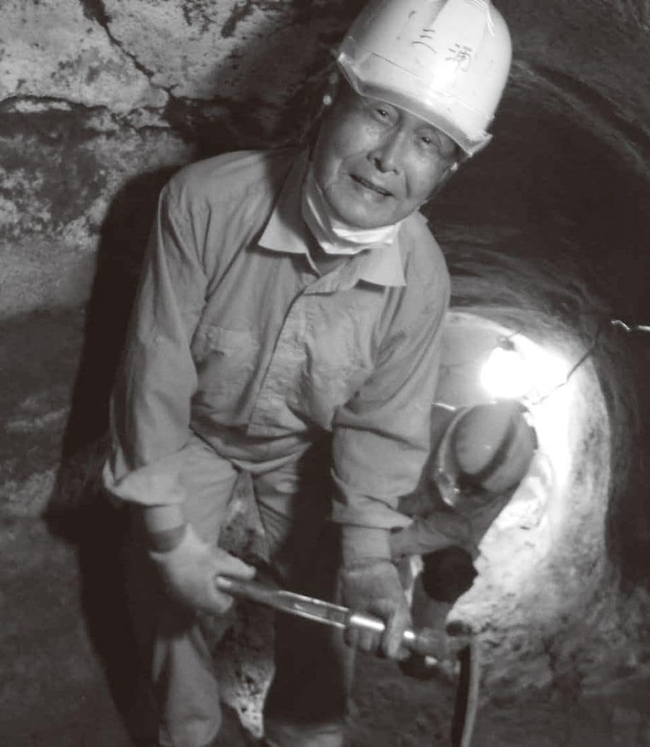 硫黄島の地下壕で土を掘る戦没者遺児の三浦さん(2020年11月。日本戦没者遺骨収集推進協会提供)