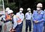 燕沢の残土置き場計画地でJR東海の説明を受ける川勝知事