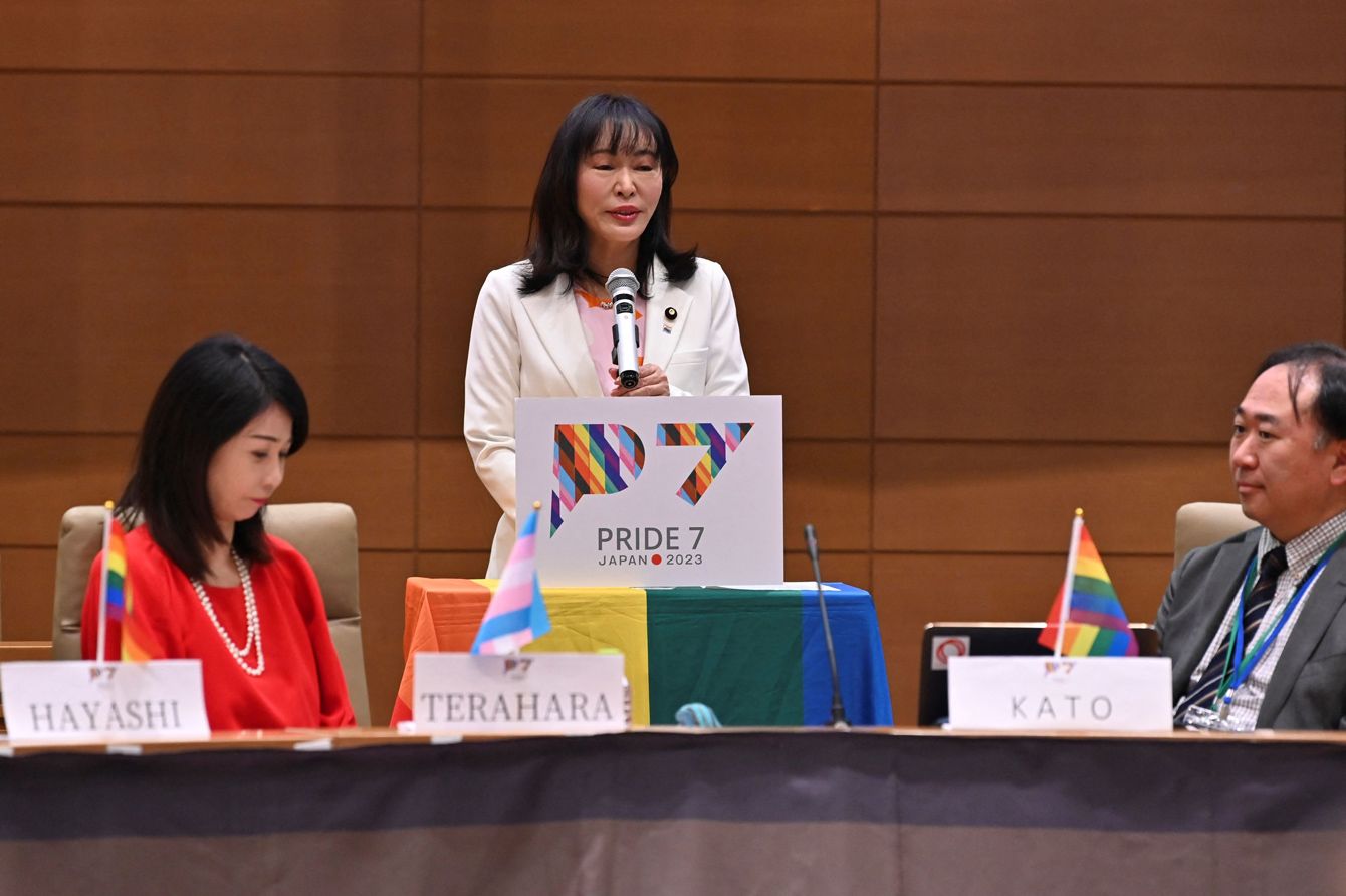 2023年3月30日、東京で開催された「プライド7サミット2023」でスピーチする森まさこ内閣総理大臣補佐官(女性活躍及びLGBT理解増進担当)。