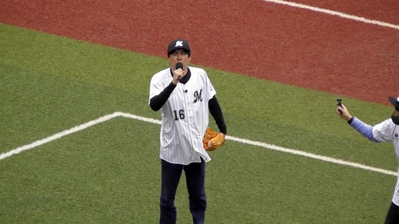 とんねるず・石橋貴明2021年5月16日、ZOZOマリンスタジアムでの始球式で(写真=YouTube: 【帝京魂】とんねるず・石橋貴明始球式/CC-BY-3.0/