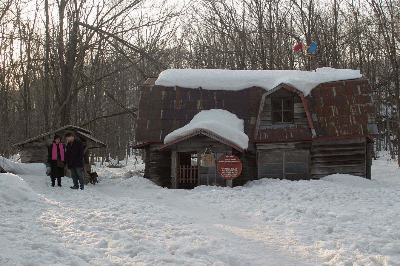 脚本家・倉本聡氏のテレビドラマ「北の国から」のロケ地「麓郷の森」に保存されている「’87初恋」と「’89帰郷」で使われた建物=2004年3月28日、北海道富良野市