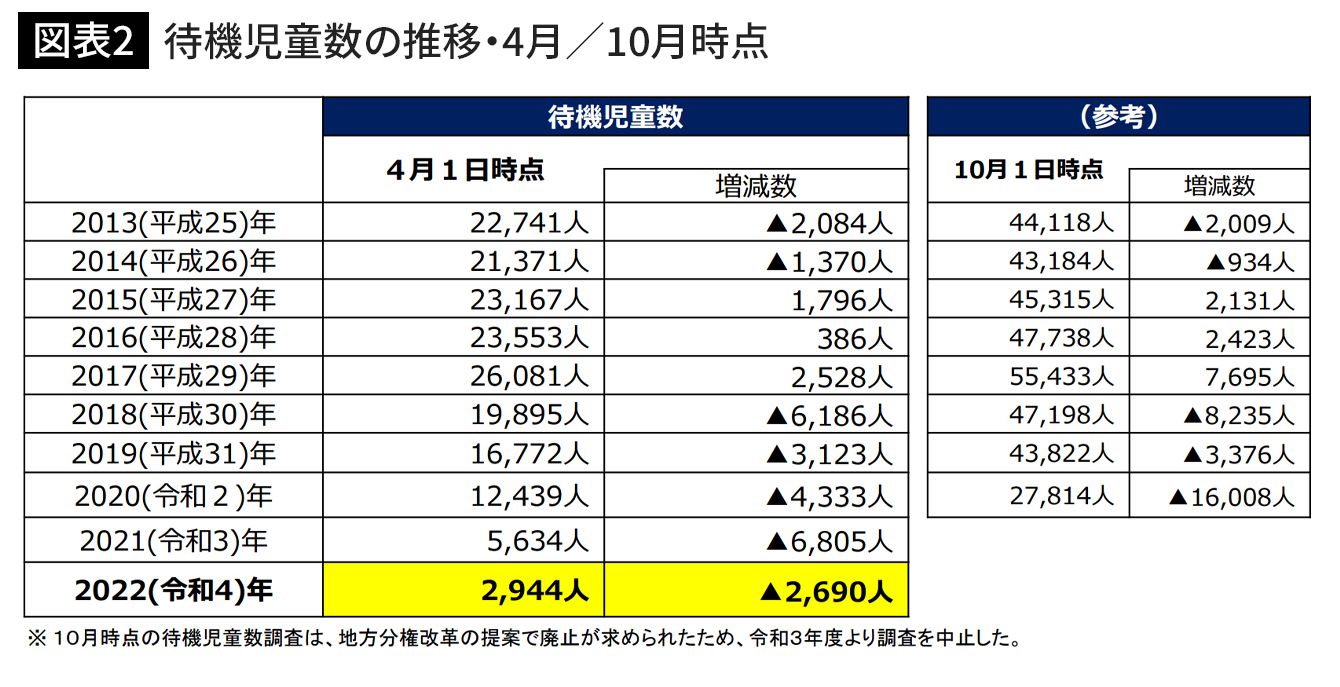 出典=厚生労働省「令和4年4月の待機児童数調査のポイント」