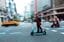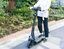道路上を走る電動キックボード「LUUP」。(時事通信=写真)
