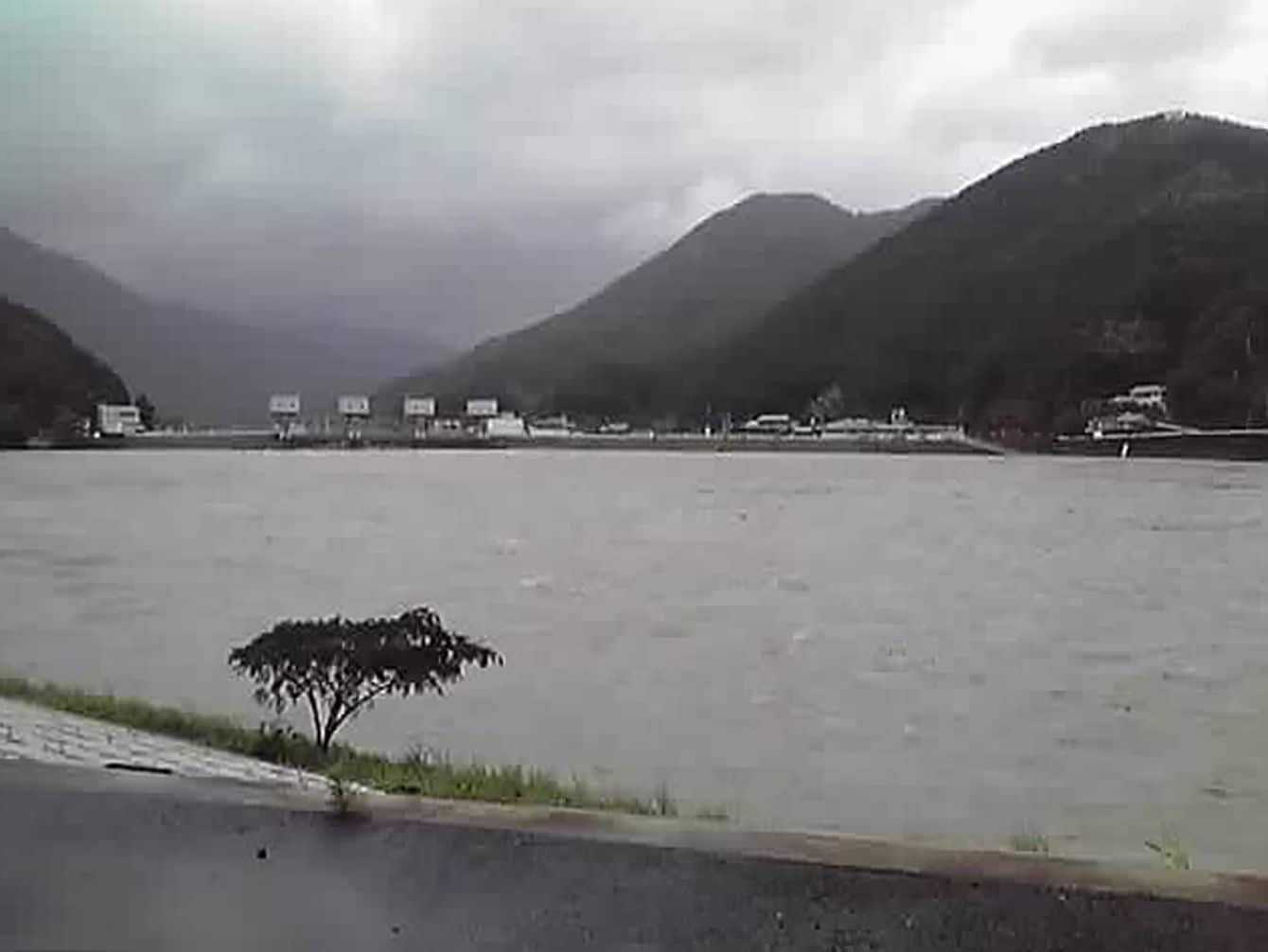 台風11号による大雨の影響で増水した熊野川=2015年7月17日、和歌山県新宮市