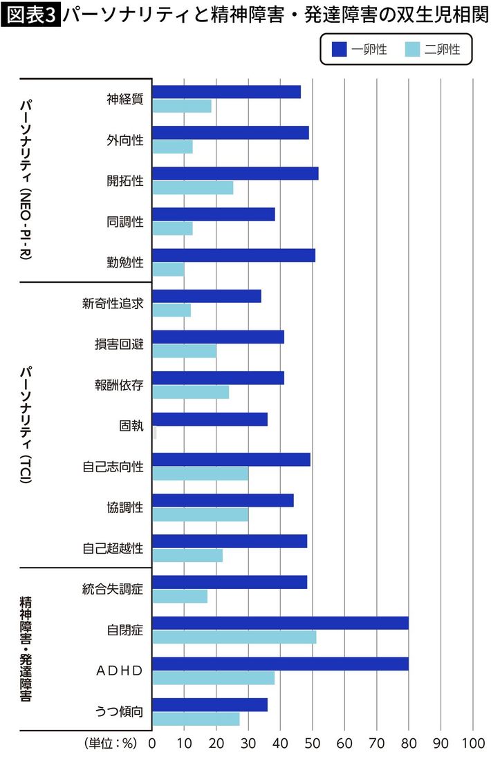 パーソナリティと精神障害・発達障害の遺伝と共有環境・非共有環境の影響の割合