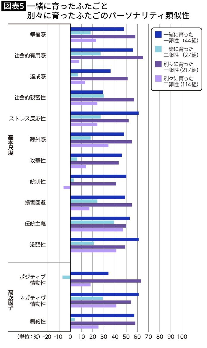 一緒に育ったふたごと別々に育ったふたごのパーソナリティ類似性