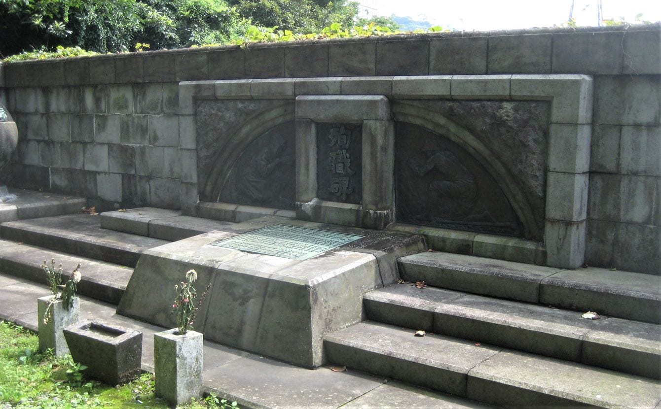 67人の犠牲者を悼む殉難碑。丹那トンネル熱海口の真上に設置されている(=熱海市)