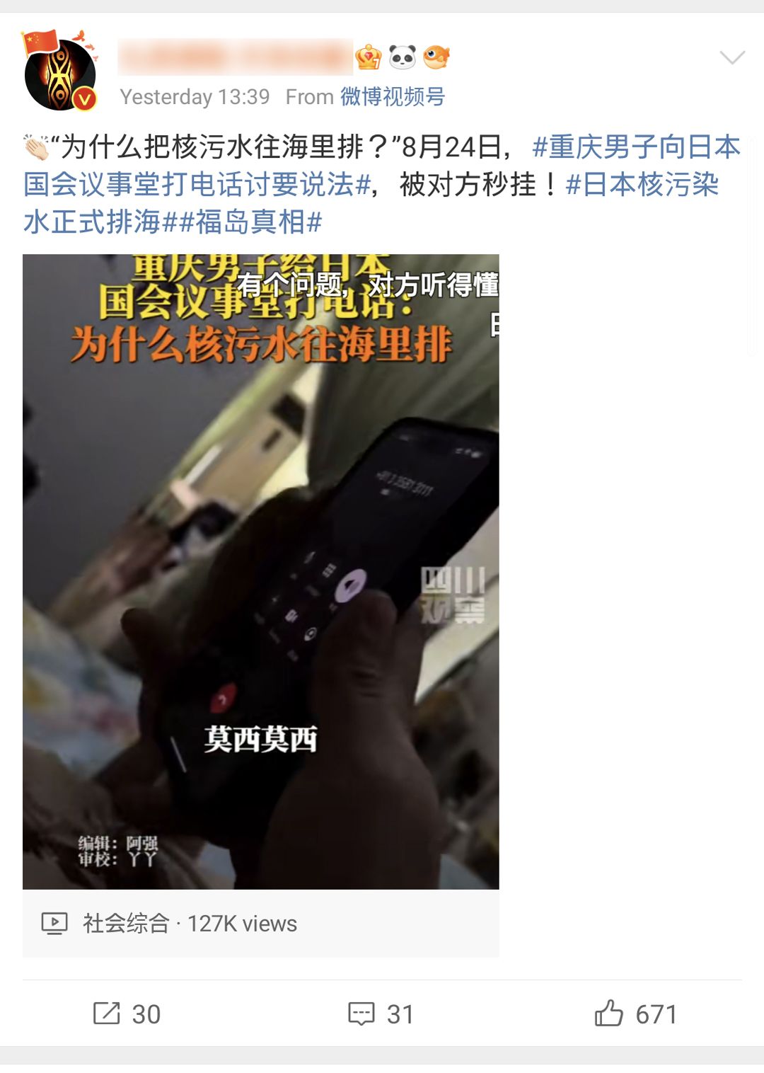 日本の参議院に「莫西莫西(もしもし)」と電話をかける様子を映した動画。このほか、東京電力だけでも中国からの番号とみられる電話が約6000件寄せられているという