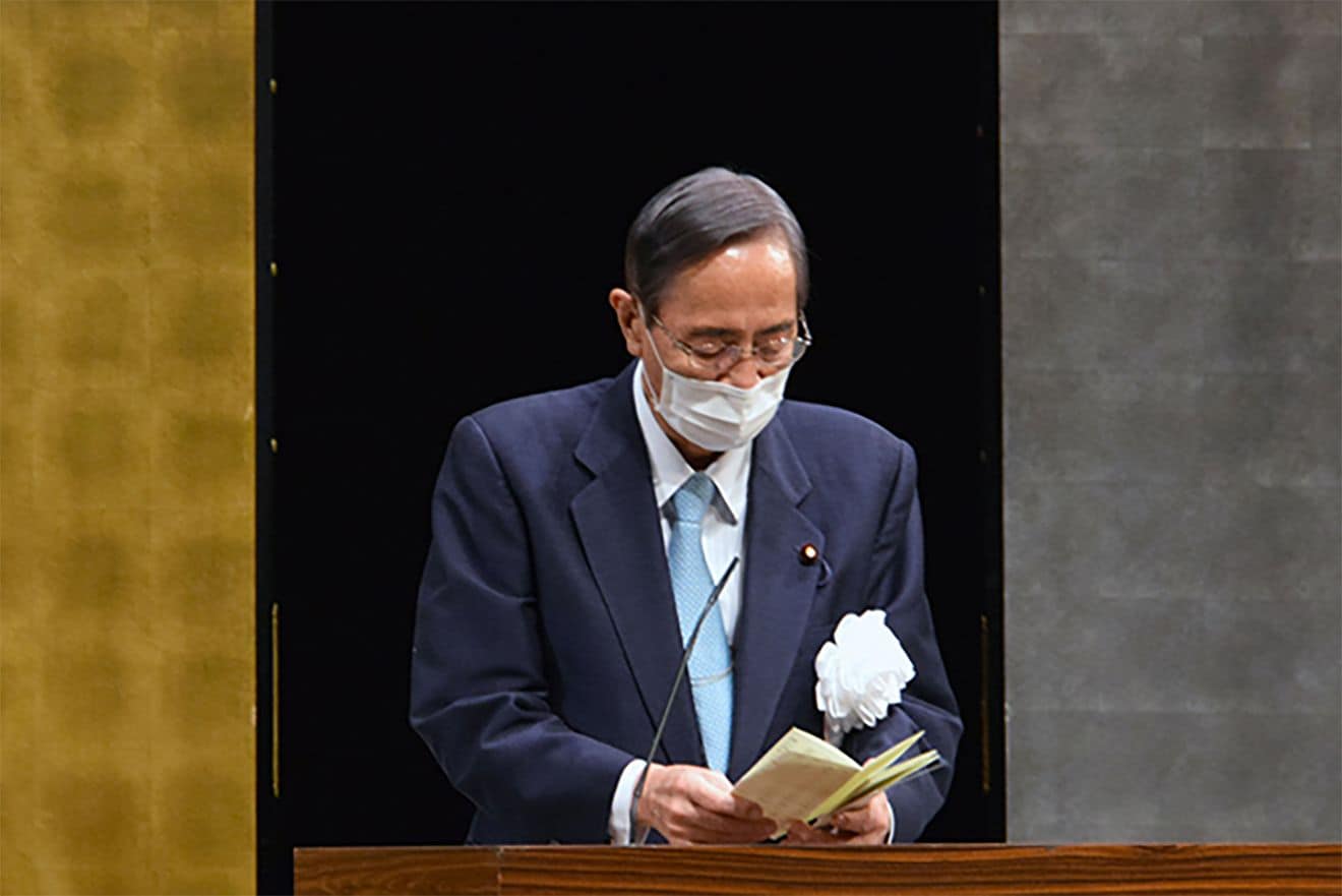 学制150年記念式典で、祝辞を述べる細田博之衆議院議長(写真=文部科学省ホームページ/CC-BY-4.0/