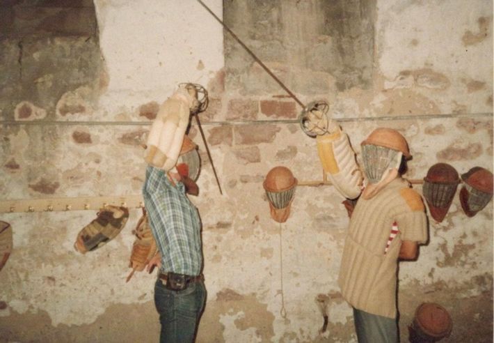 「決闘」の練習をするドイツ留学時代の菅野教授(右)