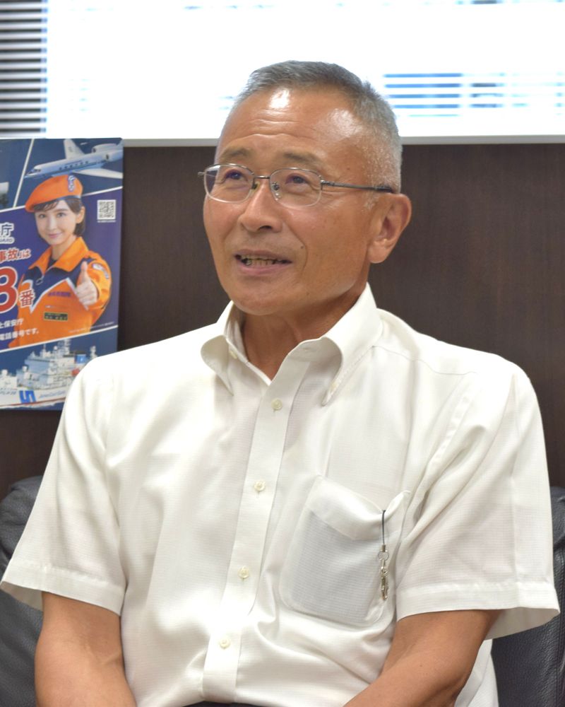 常務理事の江口圭三さん。現在59歳で、昨年まで海上保安学校長。長く海上保安大学校の水泳担当教官も務めた 撮影=プレジデントオンライン編集部