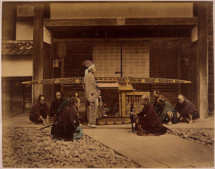 高位の武士の登城風景と推定される古写真。1860年ごろ撮影、撮影者不詳。(画像=放送大学/CC-PD-Mark/