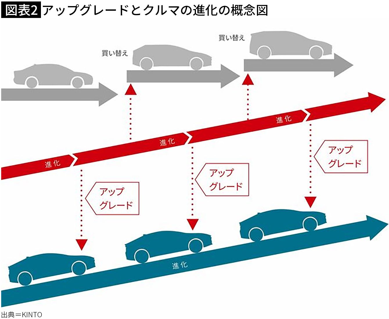 「車のサブスク」ならではの価値の一つ、アップグレードとクルマの進化の概念図