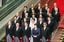 初閣議を終え、記念撮影する岸田文雄首相(前列中央)と閣僚ら=2023年9月13日午後、首相官邸