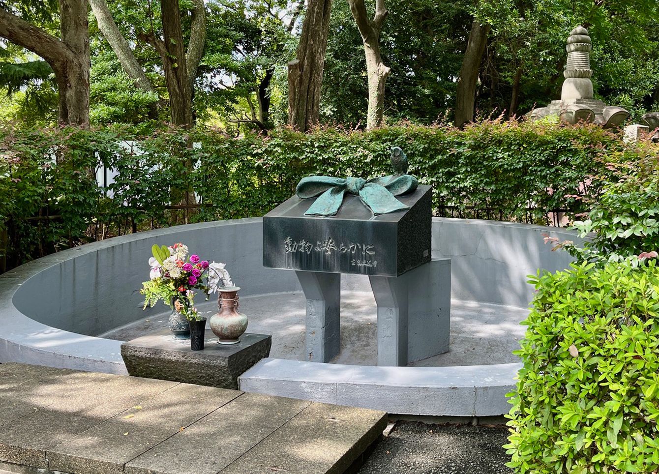 上野動物園の動物慰霊碑。最初は1931年に建立され、当初は実際に動物たちを碑の周りに埋葬していた。