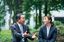 鳥取大学医学部附属病院の武中篤病院長(左)と東京オリンピック女子ボクシング金メダリストの入江聖奈さん(右)