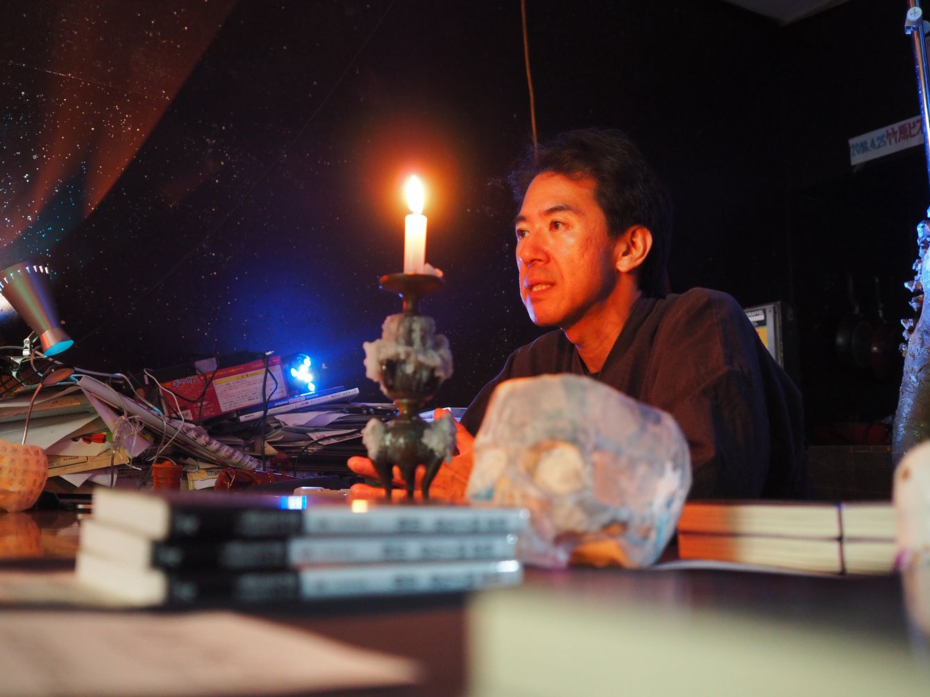 暗い店内を、ろうそくの明かりが照らしていた。