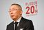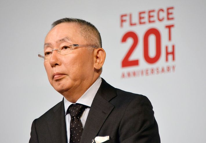 2014年10月15日、「ユニクロ」のフリース発売20年記念発表会で会見するファーストリテイリングの柳井正会長兼社長。ユニクロの名を全国に広めた商品フリースは1994年の発売から20年を迎え、全世界で累計3億枚を販売(東京都目黒区の恵比寿ガーデンルーム)