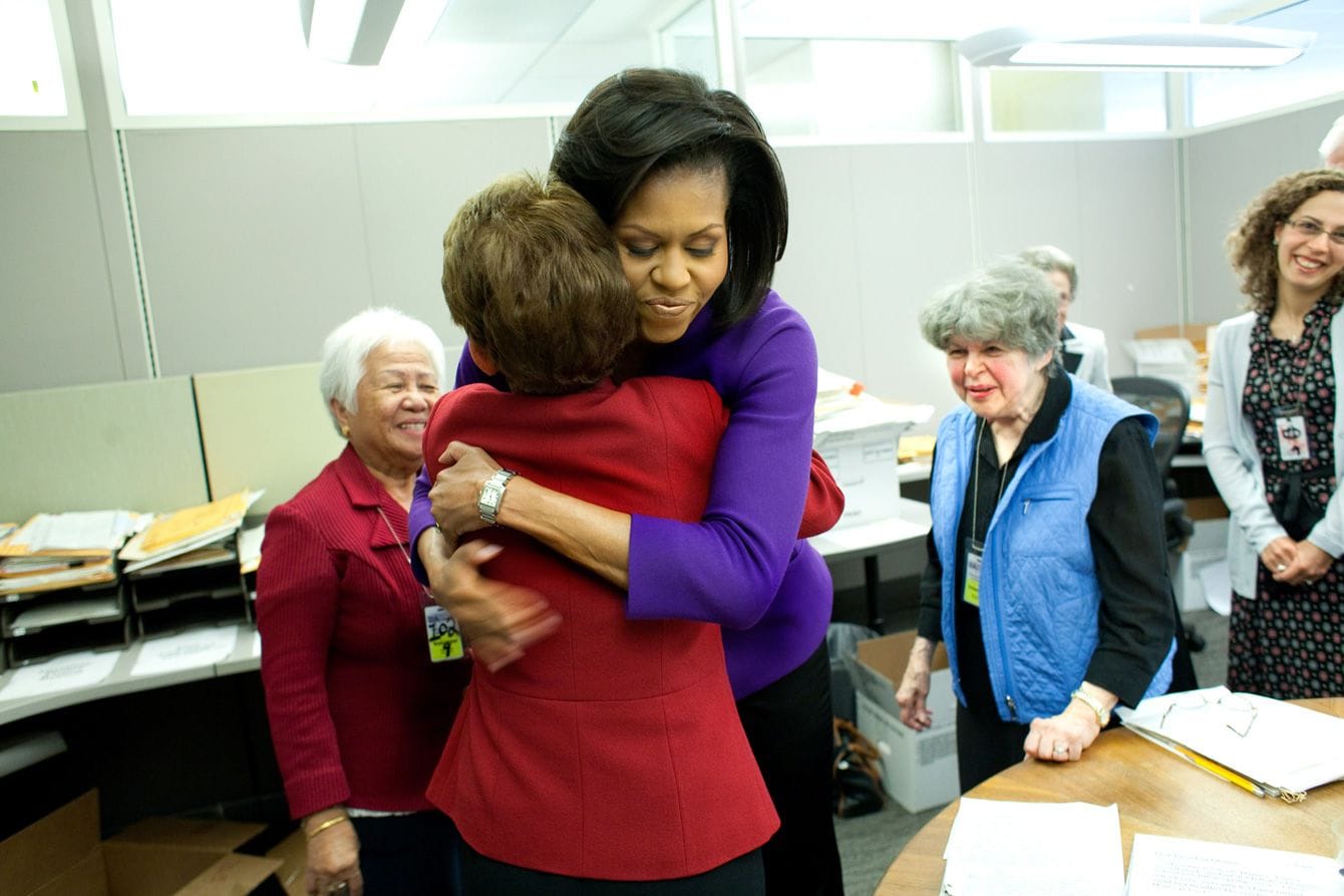 ホワイトハウスの通信部で働く女性たちに挨拶するミシェル・オバマ氏(写真=Reguyla/The White House/